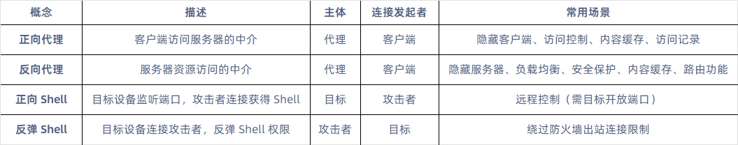 理解这些概念的关键是关注主体角色(是代理还是 Shell 主机)、连接方向(谁发起连接),以及在实际应用场景中的安全限制。希望这篇文章帮助大家更清晰地理解正向代理、反向代理、正向 Shell 和反弹 Shell 的区别和应用场景!
