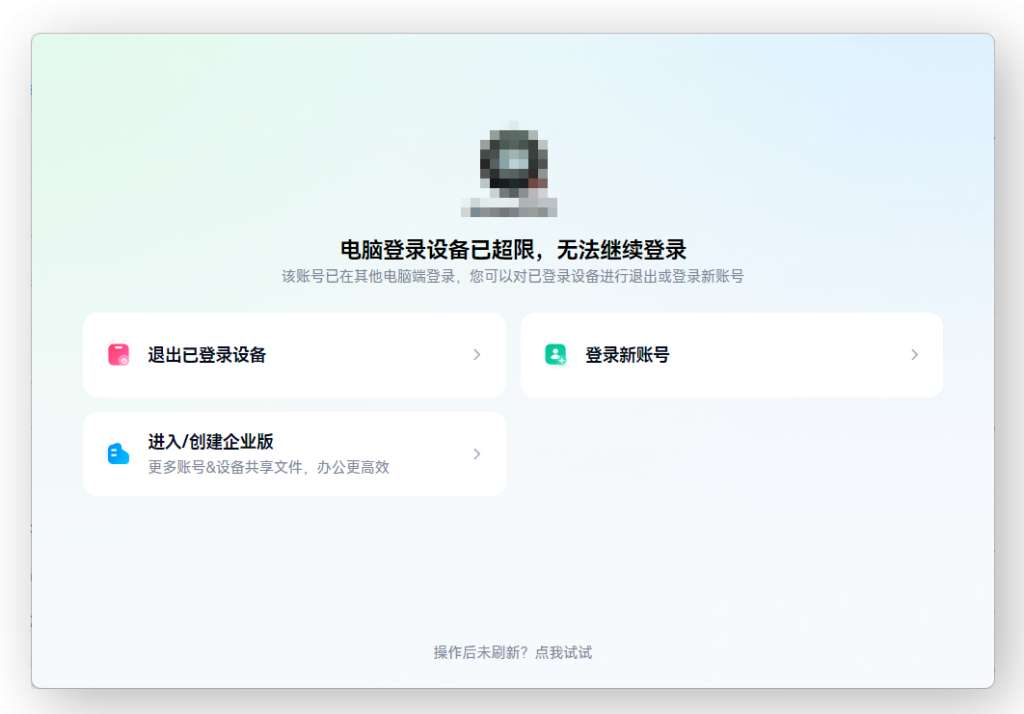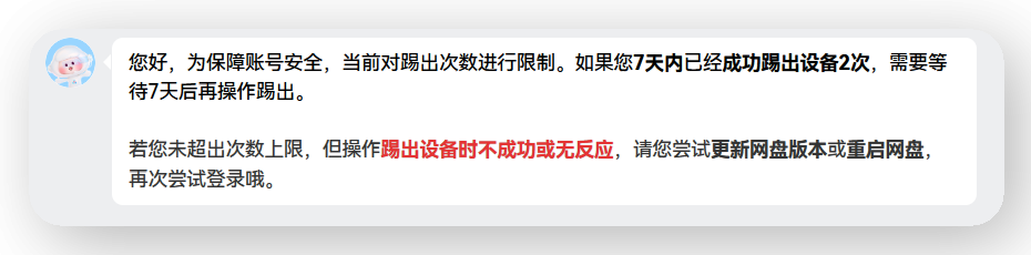 - 如果有频繁使用网盘的需求,可考虑通过手机端、网页端操作,减少对 PC 设备登录名额的占用。