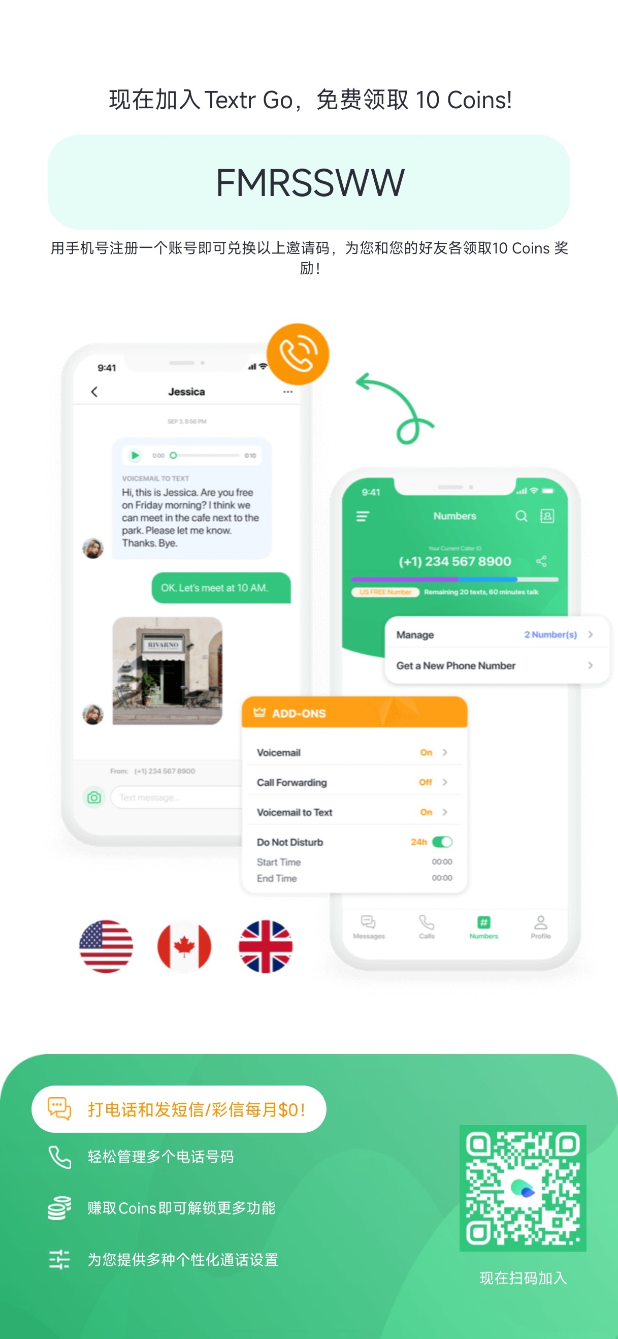 注册 TextrGo 十分简单,用户只需下载 APP,选择所需国家的虚拟号码,即可享受虚拟通讯服务。想要体验这一便捷工具的用户,可以使用我的邀请码 NJFRYQC 开始免费体验,每邀请一个新用户可以获取 10 Coins 代币。TextrGo 为现代生活中的网络安全和跨境通讯提供了高效的解决方案,推荐给有类似需求的用户。